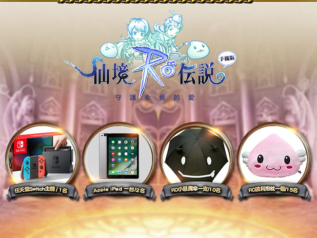 《RO仙境傳說:守護永恆的愛》事前登錄活動於即日起火熱開放!台港澳玩家限定,RO典藏頭飾回歸放送!讓了讓所有初心者們在遊戲初期都能有順暢的遊戲體驗,營運團隊特別在事前登錄活動中提供豐富的好禮,除了有「初心者勇氣指環」、「14週年紀念卡片」等虛寶,還有超人氣任天堂Switch主機、iPad、RO造型雨傘與抱枕外,更為期待遊戲已久的台港澳玩家們提供專屬福利,只要參加事前活動即可獲得「限定紀念頭飾」,一起為了即將回歸的真愛倒數集氣吧,唯有真愛才值得永恆等待。