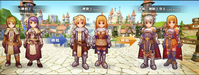 ▲一轉劍士在通過二轉考驗後可轉職為騎士,並可進階為騎士領主。