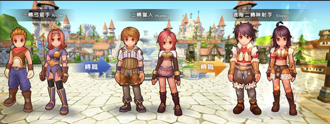 ▲一轉弓箭手在二轉轉職後成為獵人,後續可進階為神射手。