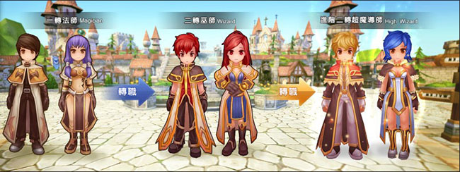 ▲一轉成為魔法師後,通過二轉考驗可轉職為巫師,並可再進階為超魔導師。