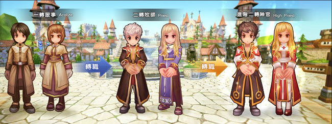 要說RO世界裡最經典最崇高的職業,服事絕對是不二人選!一轉服飾在經過二轉洗禮後會轉職為牧師,後續可再進階為神官。服事系在個人單打能力方面雖顯薄弱,但其優異的治療輔助技能可強化整個隊伍的戰鬥續航力。又或是選擇走上洗滌黑暗的大義之路,強化服事系所有的聖屬性傷害技能,以消滅世上所有的邪惡魔物為畢生志向!