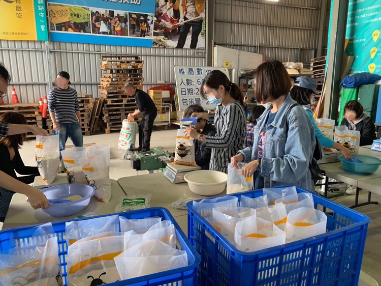 ▲唯數夥伴一同完成了3660公斤白米裝配任務