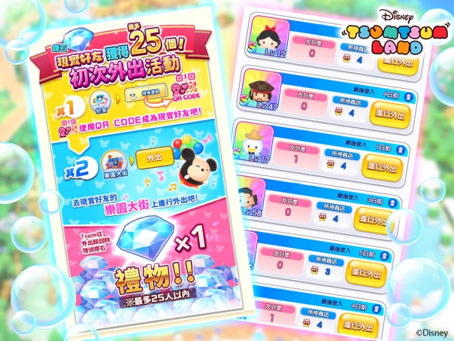遊戲中沒有好友,又不想當邊緣人怎麼辦?這邊來教玩家一些小技巧吧!遊戲中的好友分為「遊戲好友」及「現實好友」,遊戲好友即是透過「搜尋」讓線上的玩家們成為遊戲好友,而現實好友可利用遊戲中的「QRCode功能」,讓現實生活的好朋友掃描你的QRCode即完成加入好友囉!擁有現實好友有什麼好處呢?除了可以向現實好友索取門票以外,初次向現實好友派出Tsum拜訪歸回時,除了派出的Tsum可以獲得額外經驗,還可得到現實好友鑽石獎勵,在特殊活動中更可以邀請好友協助完成任務!初期想要門票通關又想獲得鑽石,快將身邊的好友都邀請來《Disney Tsum Tsum Land》成為「現實好友」吧!