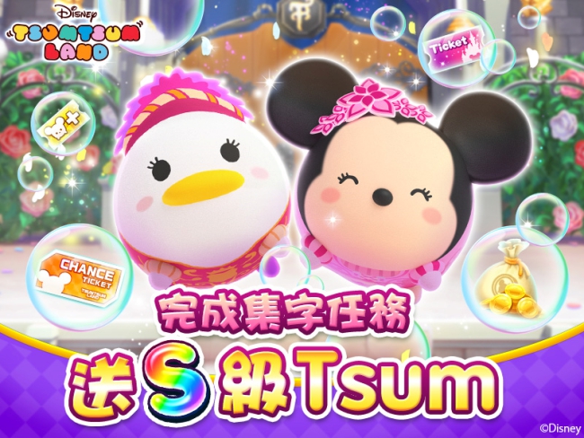 Tsum Land》今(22) 日正式登陸 iOS 與 Android 雙平台!為慶祝遊戲上線,營運團隊特別推出「皇家好友」系列活動,只要在遊戲內完成指定任務,就可獲活動限定S級Tsum角色「皇家好友米妮」及「皇家好友黛絲」!除此之外,官方也搶先釋出「皇家聯盟活動」玩法、「好友系統」小技巧。主打迪士尼主題樂園為背景、收錄豐富的迪士尼主題角色、多樣化自由搭配的樂園大街,現在《Disney Tsum