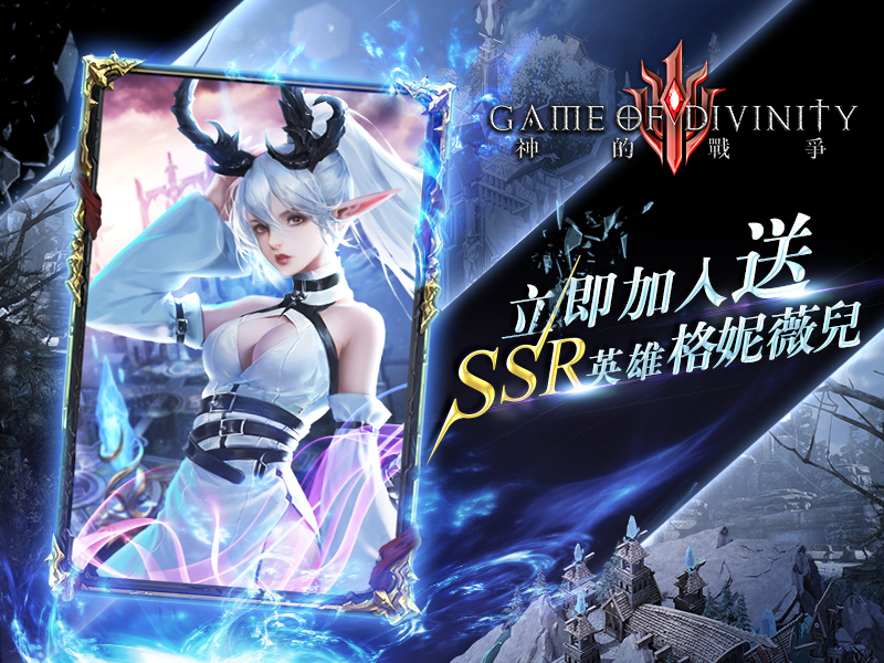 歡慶事前登錄活動突破十萬人次!官方為感謝玩家的支持,特別加碼全服贈送大禮,即刻起於首月加入《神的戰爭GOD》的玩家,登入免抽獎即可獲得SSR英雄「格妮薇兒」。除此之外,慶祝遊戲開服,於活動期限內完成指定任務還有其它SSR英雄以及海量的資源獎勵等你來拿,立即加入《神的戰爭GOD》來場史無前例的策略大戰吧!