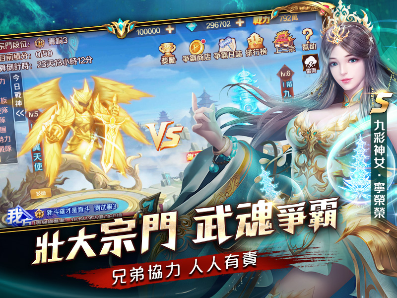 「宗門戰」則是敵我兩個小隊分別進行兩場戰鬥,如進攻方獲勝則摧毀防守方2面旗幟,如進攻方和防守方打平,則只能摧毀防守方1面旗幟。想在宗門戰中讓宗門獲利最大化,宗主必須根據對手的防守陣容,積極組織所有成員討論,如何分配對手才能將摧毀旗幟利益最大化,相當考驗整個宗門策略及團隊合作。