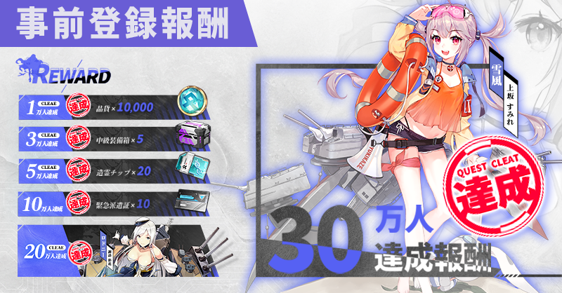 l 歡慶事前登錄突破30萬人,加碼送人氣角色「雪風」