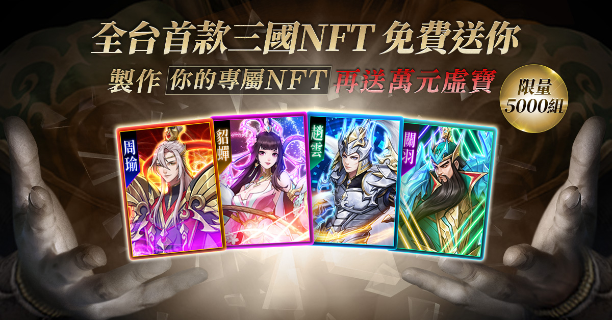為歡慶《神將風雲錄》事前預約活動上線,官方首創限量5,000組的「三國NFT」,不僅採用獨一無二、客製化設計,並依照玩家們的遊戲歷程,訂製屬於主公們專屬NFT。前3,000名預約的主公可免費獲得,3001~3500組將透過事前預約隨機抽取送出,3,501~5,000組於上線後陸續贈送,只送不賣,送完為止,主公們一定要密切注意官方的活動訊息,讓我們一同攜手進入元宇宙的世界吧!