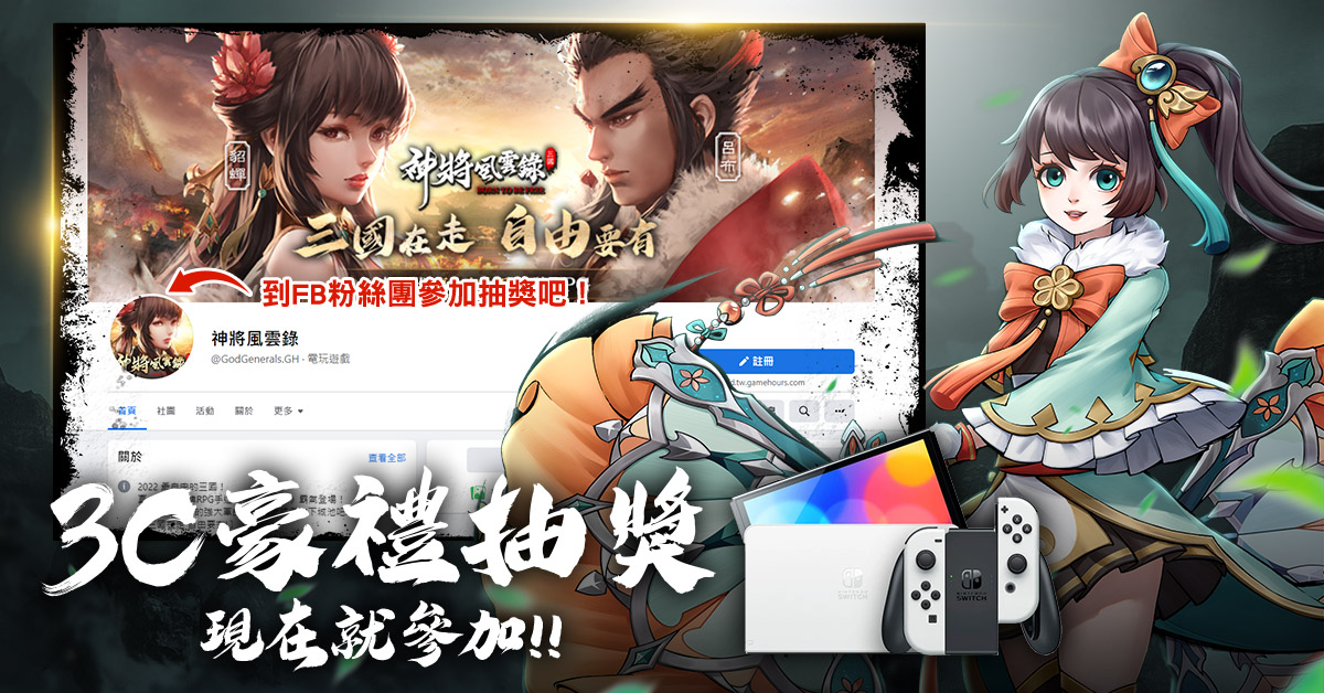 隨著事前預約進入最後倒數,官方FB粉絲團最後一波Switch OLED抽獎也於6月22日開跑,玩家只要完成事前預約,到FB粉絲團活動貼文留言達成指定條件,即有機會獲得Switch OLED大獎。透過事前預約頁面預約可獲得限量禮包,而到雙商店預約還能再豪取商店預約加碼禮包。所有抽獎活動將於6月30日結束,現在就立刻行動! 關注官方粉絲團,並透過「Google Play」或「App Store」商店完成預約參加活動吧!