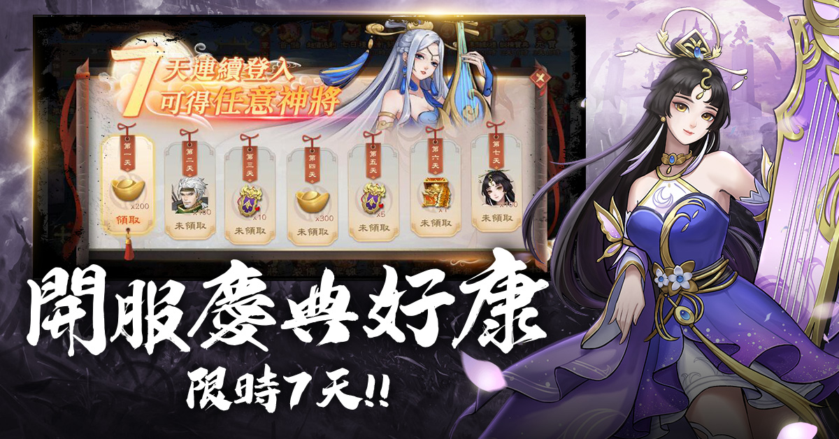 開服慶典活動曝光,七天登錄活動送傳說武將大喬!